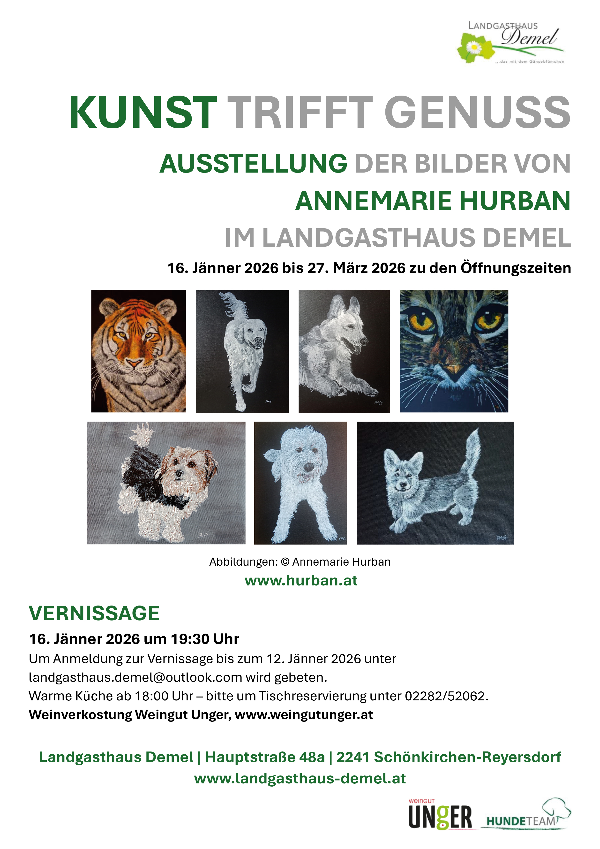 - KUNST TRIFFT GENUSS - AUSSTELLUNG UND VERNISSAGE DER BILDER VON ANNEMARIE HURBAN IM LANDGASTHAUS DEMEL